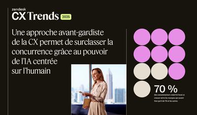 L’IA donne une nouvelle direction à l’expérience client. Zendesk peut vous montrer la voie à suivre. Explorez notre rapport et découvrez pourquoi 73 % des leaders de la CX jugent qu’adopter l’IA à grande échelle est essentiel pour résister à la concurrence des cinq prochaines années.