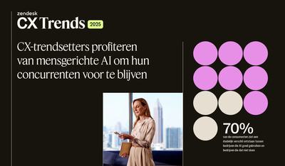 AI heeft een steeds grotere invloed op CX. Zendesk laat zien wat je kunt doen om bij te blijven. Lees ons rapport en ontdek waarom 73% van de CX-leiders zegt dat bedrijven die AI op grote schaal toepassen, de concurrentiedruk in de komende vijf jaar zeker zullen overleven.