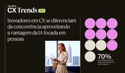 A IA está mudando o caminho do CX. Deixe a Zendesk abrir o caminho para você. Confira nosso relatório e veja por que 73% dos líderes de CX concordam que as empresas que adotam a IA em grande escala sobreviverão às pressões competitivas dos próximos cinco anos.